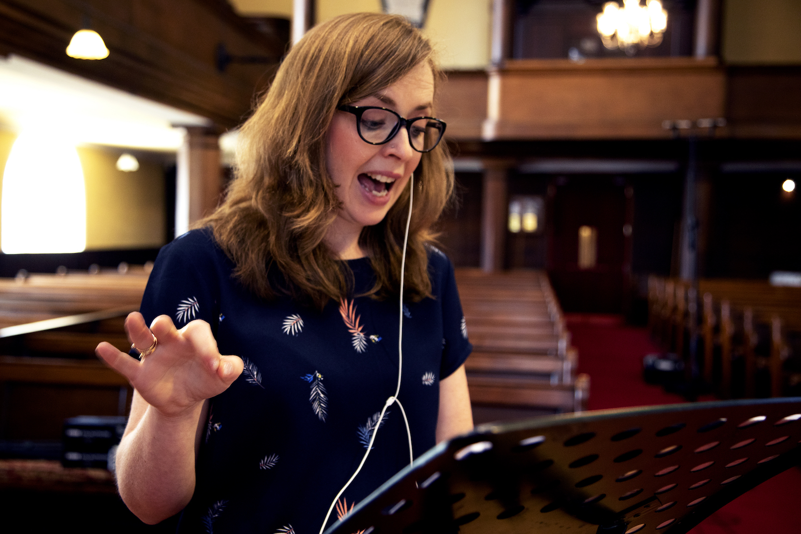 Dáirine Ní Mheadhra léiritheoir taifeadta amhráin / producer of the song recordings