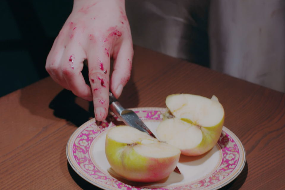 I perform Peter Fahey’s Through and Through a piece about a woman who is betrayed by her lover and subsequently murders him in the woods. Based on a medieval ballad, this film sees the text translated into a modern context and we view the tale through the fragmented experiences of the woman now alone in her bedsit.